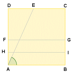 Consideriamo il foglio di carta di forma quadrata e mediante una piegatura costruiamo un qualsiasi angolo acuto BAE che ha per lato il lato AB del quadrato.