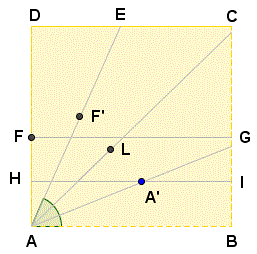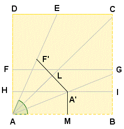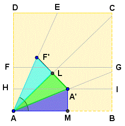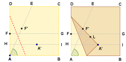 Piegando il foglio in modo da ottenere una linea retta passante per A' e perpendicolare a AB possiamo osservare che i tre triangoli rettangoli AMA', AA'L e ALF'sono congruenti.