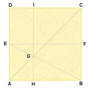 Ora il segmento AH è un terzo del segmento AB; i triangoli rettangoli ABE e HBG sono simili perchè hanno gli angoli corrispondenti uguali, se consideriamo il lato AB unitario e indichiamo con x il segmento AH (il triangolo AHG è isoscele AH=HG) possiamo scrivere la proporzione: