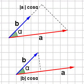 a ⋅ b = |a||b|cos α
