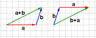 Se a e b sono due vettori qualsiasi la somma dei due vettori non cambia se si cambia l'ordine degli addenti, cioè:a + b = b + a