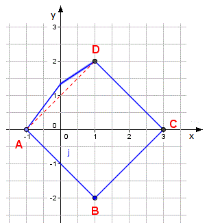 Nel piano euclideo il quadrilatero ABCD con i vertici A(-1; 0), B(1; -2), C(3; 0), D(1; 2) è un quadrato ha i lati tutti uguali, i lati opposti sono paralleli e gli angoli sono tutti retti.