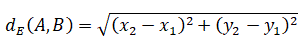 La distanza euclidea tra i due punti A(x1, y1) e B(x2, y2) è data dalla formula: