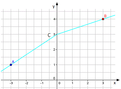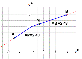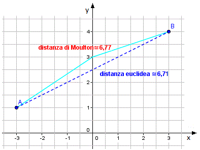Come si vede la retta per A e B interseca l'asse y nel punto C(0, 3) per cui la distanza di Moulton tra A e B è: