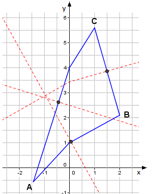 Nel piano euclideo i triangoli hanno tre altezze che si intersecano in uno stesso punto detto ortocentro, nel piano di Moulton un triangolo può avere quattro altezze che non si intersecano in uno stesso punto come si vede in figura