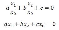 Spesso l'equazione della retta nel piano proiettivoax1 + bx2 + cx0 = 0