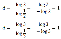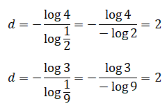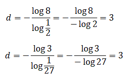 Indichiamo con s il fattore di scala con n il numero dei segmenti identici e simili a quello iniziale e con d la dimensione del segmento. Possiamo scrivere nel primo caso: