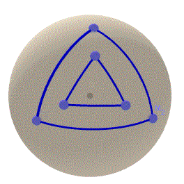 Possiamo dire che i due triangoli equilateri sferici sono simili? No non sono simili. Come si vede passando dal triangolo più piccolo al triangolo più grande sicuramente si conservano i rapporti tra le lunghezze dei lati ma, contemporaneamente aumenta anche l'area e di conseguenza aumenta anche l'ampiezza degli angoli. Ricordiamoci che in un triangolo sferico la somma degli angoli aumenta con l'aumentare dell'area. Ne segue, che non si conservano gli angoli e quindi non si conserva neanche la forma. Nella geometria sulla sfera vale la seguente proprietà: