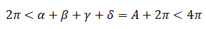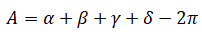 Da cui si ottiene che la somma degli angoli è compresa tra 360° a 720° quest'ultimo valore si ottiene quando il quadrato degenera in una circonferenza massima e i quattro angoli sono tutti piatti: