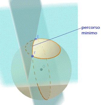 In questo caso, il piano secante non passa per il centro della sfera e la circonferenza non può essere considerata una geodetica perchè non contiene percorsi minimi. Non si potrà mai disporre un elastico teso lungo questa circonferenza. Se si lascia andare un elastico teso tra due punti di questa circonferenza l'elastico cambierà posizione assumendo quella corrispondente all'arco minore della circonferenza massima.