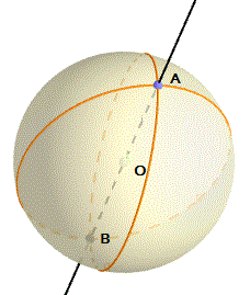 I due punti A e B simmetrici rispetto al centro O della sfera sono detti punti antipodali. Ad esempio, supponendo che la Terra sia una sfera perfetta, i meridiani sono geodetiche che passano per i poli e le linee perpendicolari ad essi sono i paralleli. L'equatore è l'unico parallelo che è anche una geodetica.