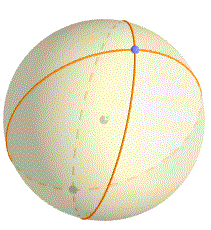 Invece sulla superficie sferica, dove le circonferenze massime hanno la stessa funzione delle rette nel piano, due circonferenze massime si incontrano sempre in due punti.