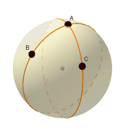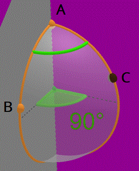 Ecco ad esempio un angolo sferico BAC di 90°.
