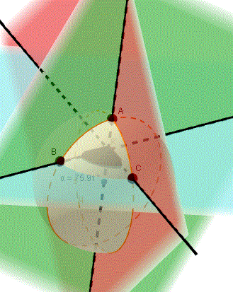 E la misura dell'angolo sferico individuato dalle due semicirconferenze massime AB e AC con l'estremo A in comune è dato dalla misura dell'angolo diedro formato dai due piani che contengono le due semicirconferenze massime AB e AC.