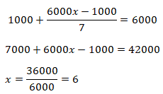 1000 + (x ⋅ y - 1000) : 7 = y
