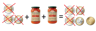 Ora, è facile capire che il barattolo di pomodoro costa la metą di 1,50 euro cioè costa 0,75 euro e quindi la bottiglia