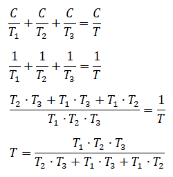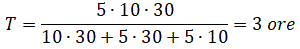 e con T il tempo necessario per riempire la cisterna quando sono aperti contemporaneamente i tre rubinetti.