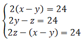 nel terzo cestino ci saranno 2z - (x - y) = 24 fragole