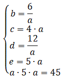 a, sostituire d nella quarta equazione e ricavare e in funzione di a, infine sostituire il valore di e nella quinta