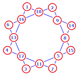 2+6+10+16;   2+8+9+15;   3+5+11+15   3+6+12+13