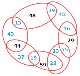 Ora, nell'ellisse b c'è il numero 39 e quindi mancano due numeri aventi per somma 61 che sono 16 e 45. Nell'ellisse