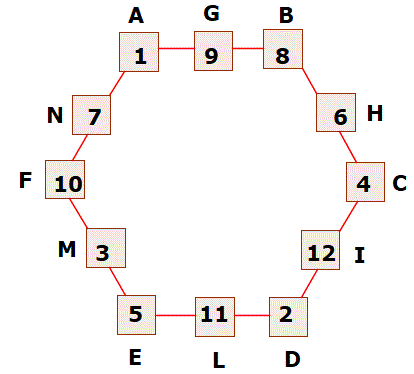 Ora, inserendo nelle dodici caselle tutti i numeri da 1 a 12 senza ripetizioni si ha: