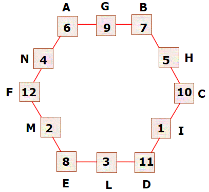Ora, inserendo nelle dodici caselle tutti i numeri da 1 a 12 senza ripetizioni si ha: