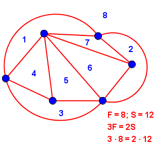 Non è difficile verificare che tutte le facce interne di un grafo semplice planare massimale sono limitate da tre spigoli e la faccia esterna, anche se è illimitata, ha per confine tre spigoli del grafo. Inoltre, se S è il numero degli spigoli e F è il numero delle facce e ogni faccia è limitata da tre spigoli e ogni spigolo è comune a due facce possiamo scrivere l'uguaglianza 3F = 2S.