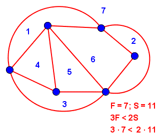 In generale, in un grafo semplice planare, con almeno una faccia triangolare, vale la relazione 3F ≤ 2S dove F è il numero delle facce e S è il numero degli spigoli.