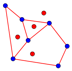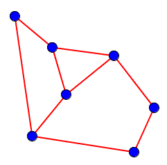Il nuovo grafo G' con i vertici rossi e gli spigoli blu è duale di G. Se confrontiamo i due grafi possiamo scoprire che alle 4 facce di G corrispondono 4 vertici di G', ai 7 vertici di G corrispondono 7 facce di G' e ai 9 spigoli di G corrispondono 9 spigoli di G'. In altre parole, tra i due grafi c'è uno scambio tra il numero delle facce e il numero dei vertici e viceversa, mentre il numero degli spigoli resta immutato.