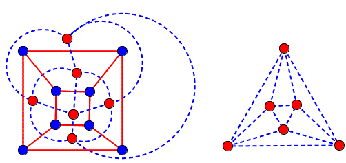 e il tetraedro regolare è duale di se stesso cioè, i centri della 4 facce di un tetraedro regolare sono vertici di un altro tetraedro regolare.