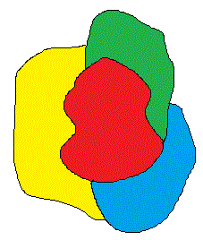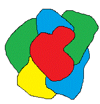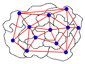 A questo punto sorge una domanda ovvia: ma se cinque stati confinano ciascuno con gli altri quattro allora occorono necessariamente almeno cinque colori e quindi la congettura dei quattro colori è falsa? Augustus De Morgan scoprì che è materialmente impossibile che cinque stati confinano ciascuno con gli altri quattro e questo si dimostra facilmente utilizzando la teoria dei grafi. Una carta geografica è un grafo planare i confini sono gli spigoli e i vertici sono i punti in cui due o più confini si incontrano. La congettura dei quattro colori è quindi un problema interno alla teoria dei grafi e può essere riformulato in modo equivalente utilizzando il linguaggio dei grafi. Per questo tipo di problema si preferisce ragionare sul grafo duale della carta geografica perchè è più leggibile e contiene tutte le informazioni che occorrono. Vediamo come si può ottenere il duale di una carta geografica. Supponiamo di avere la seguente carta geografica.