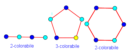 Come si vede il grafo ha un ciclo C5 e quindi non può avere un numero cromatico minore di 3.