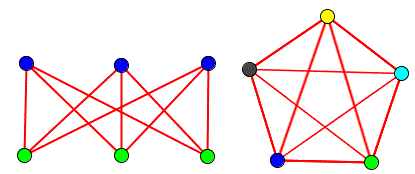 Un grafo bipartito Km,n è 2-colorabile mentre un grafo completo Kn è n-colorabile