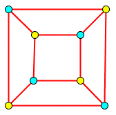 Quest'ultima relazione non ci dice qual è il numero cromatico esatto ma pone una limitazione: il numero cromatico è minore o uguale al grado massimo dei vertici. Ad esempio, il grafo in figura è regolare di grado 3 e quindi il suo numero cromatico è al massimo 3.