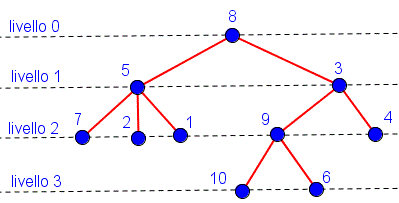 se scegliamo come radice il vertice 8 la struttura del grafo assumerà la seguente forma