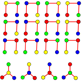 Attenzione a non confondere il grafo ad albero con tre vertici non etichettati con quello con tre vertici etichettati. C'ò un solo albero con tre vertici non etichettati perchè i vertici non sono distinguibili. Con quattro vertici ci sono 16 alberi etichettati.
