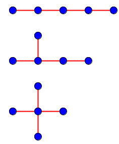 Un grafo connesso e privo di cicli è detto albero cosí in un albero esiste uno e uno solo percorso possibile tra ogni coppia di nodi. Ecco ad esempio, tutti i possibili alberi con cinque vertici.