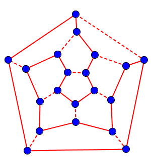 Il matematico irlandese William Hamilton (1805-1865) nel 1859 propose il gioco del dodecaedro: su ognuno dei 20 vertici di un dodecaedro regolare di legno mise il nome di una città famosa e chiese: è possibile per un viaggiatore partire da una città visitare una e una sola volta tutte le altre città, trasferendosi lungo gli spigoli del solido, e ritornare alla città di partenza?