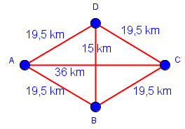 Un circuito hamiltoniano rappresenta la soluzione ideale per risolvere alcuni problemi reali detti il problema del commesso viaggiatore che può essere sintetizzato cosí: un rappresentante di commercio parte da casa, e vuole effettuare il percorso più breve che gli consente di visitare uno dopo l'altro alcuni clienti che vivono in luoghi diversi e di tornare a casa. Naturalmente, ha con sè una mappa stradale con le indicazioni delle distanze. Supponiamo che il rappresentante abita nella città A e debba visitare tre clienti che sono rispettivamente nelle città B, C e D e tornare in A avendo a disposizione il seguente grafo pesato.
