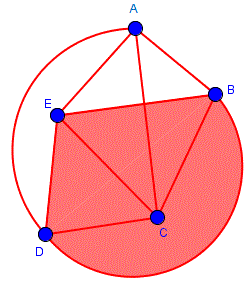Gli spigoli BD, DE, EB formano una curva piana chiusa che divide il piano in due regioni, una interna alla curva (quella colorata) e l'altra esterna.