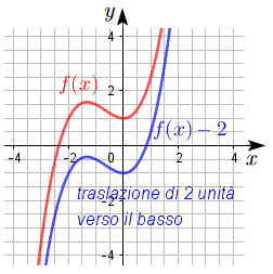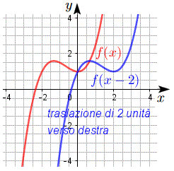 funzione traslata a destra di 1 unità e in basso di 2 unità: f(x) = (x - 1)3 - 2