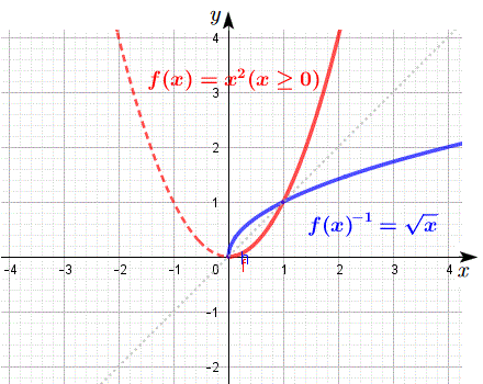 essendo non iniettiva è invertibile la sua restrinzione all'intervallo x≥0 e la sua inversa è f(x)-1=√x