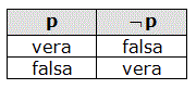 e naturalmente è una proposizione vera. Negando una proposizione falsa si ottiene una proposizione vera e, viceversa, negando una proposizione vera si ottiene una proposizione falsa. La negazione logica si indica con il simbolo ¬ (che si legge non). Ecco la tavola di verità.