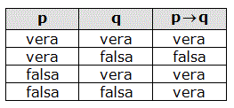 In altre parole, se p e q indicano due proposizioni, l'implicazione p → q è una proposizione sempre vera eccetto il caso in cui p sia vera e q falsa.