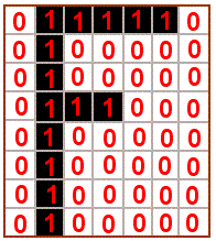 Il mosaico è una tecnica decorativa con la quale l'immagine viene riprodotta con delle tessere colorate quasi quadrate di diversi materiali. La codifica di un'immagine in un numero avviene con la stessa tecnica del mosaico. L'immagine viene prima scomposta in tessere quadrate in bianco e nero e poi i quadrati in base al colore vengono trasformati in una sequenza di 0 e 1. Ogni quadrato è detto pixel (da picture element elemento dell'immagine) e quindi il pixel rappresenta il più piccolo elemento costituente un'immagine digitalizzata. Vediamo un esempio molto semplice che comunque può essere applicato a qualsiasi altra immagine. Digitalizziamo la lettera F. Sovrapponiamo la lettera con una griglia di quadrati: