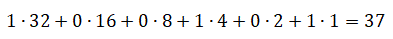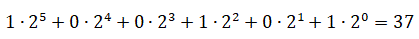 Quando scriviamo un numero in base diversa da 10 dobbiamo sempre specificare la nuova base; ecco ad esempio come si scrive 37 in base 2: