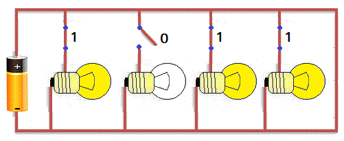 Ad esempio, il numero 11, espresso in base dieci, tradotto nel sistema binario diventa 10112 e, tradotto in linguaggio elettrico diventa per l'interruttore: