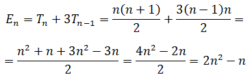 En = 1 + 5 + 9 + ... + 4n-3 = n(1+4n-3): 2 = n(4n-2) : 2 = 2n2 - n