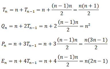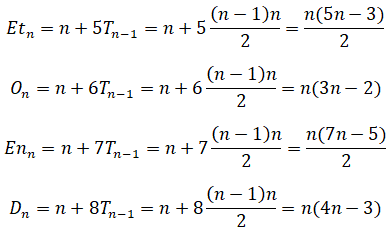Etn = 1+6+11+16+...+(5n-4) = n(5n-3)/2